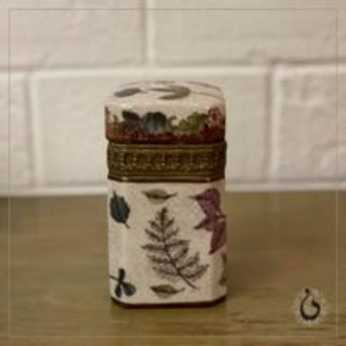 Small Ceramic Jar with flower pattern and Bronze inlay..